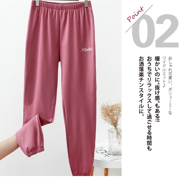 ルームパンツ 母の日 部屋着 ナイトウェア 吸湿発熱 微起毛 ストレッチ 裾ゴム 暖かい レディース 秋冬 ルームウェア 刺繍ロゴ ゆったり 裏起毛 長ズボン パジャマ レディーロングパンツ