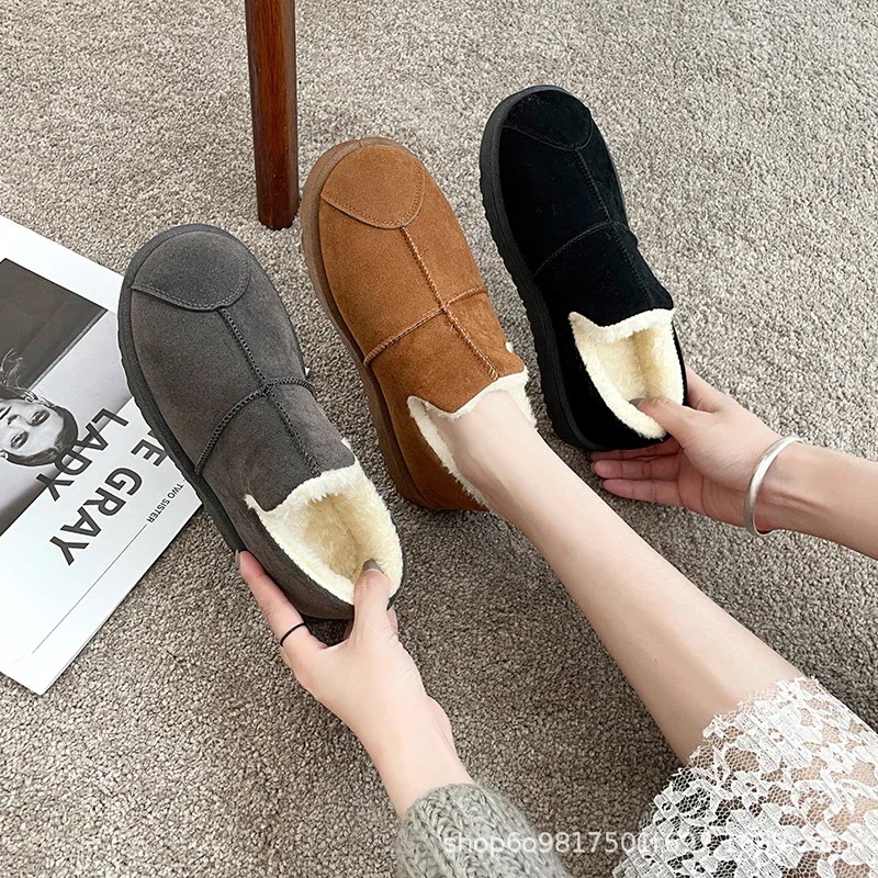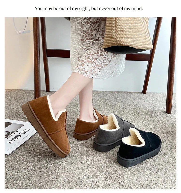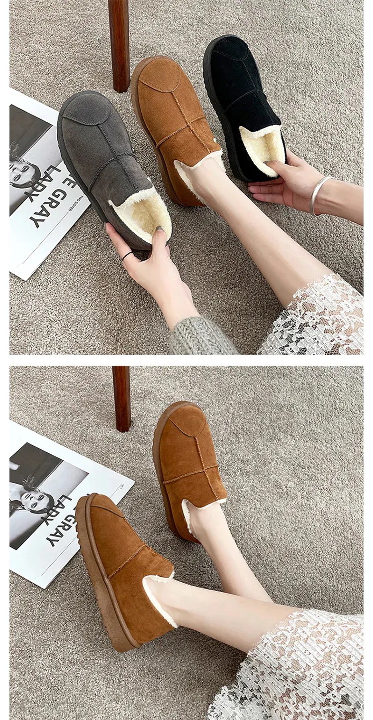 もこもこ スリッポン 厚底靴 秋冬 ボア 防風 暖かい快適 スノーブーツ ラウンドトゥ シンプル ブレッドシューズ スエード