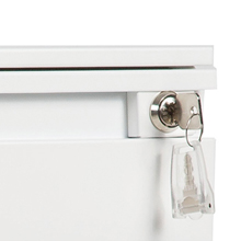 【POINT 3 安心のオールロック】1箇所を施錠するだけで、自動に全ての引出しをロック! 大切な書類やプライベートをしっかりと守ります。 カギの紛失に対応して、予備カギが付いております。