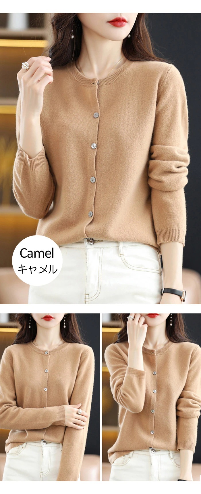 クーポン利用で2 080円 ニット カーディガン レディース 秋 冬 カシミヤタッチ ニットカーディ トップス ベーシック クルーネック 羽織り ニット セーター 柔らか ゆったり 大きいサイズ ミ
