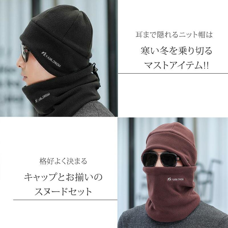 ニット帽 メンズ 冬 キャップ スヌード 2点セット 黒 シンプル 無地 帽子 ビーニー ネックウォーマー マフラー 帽子