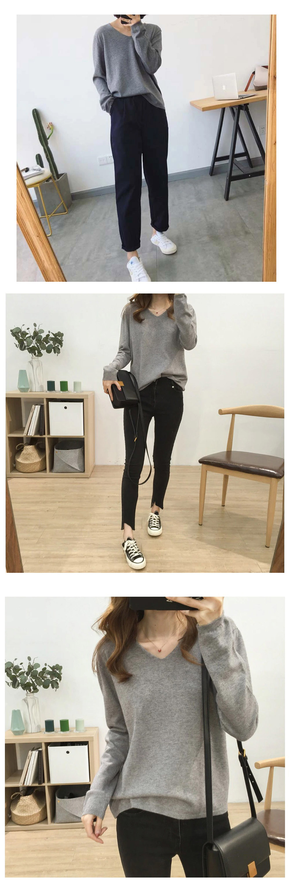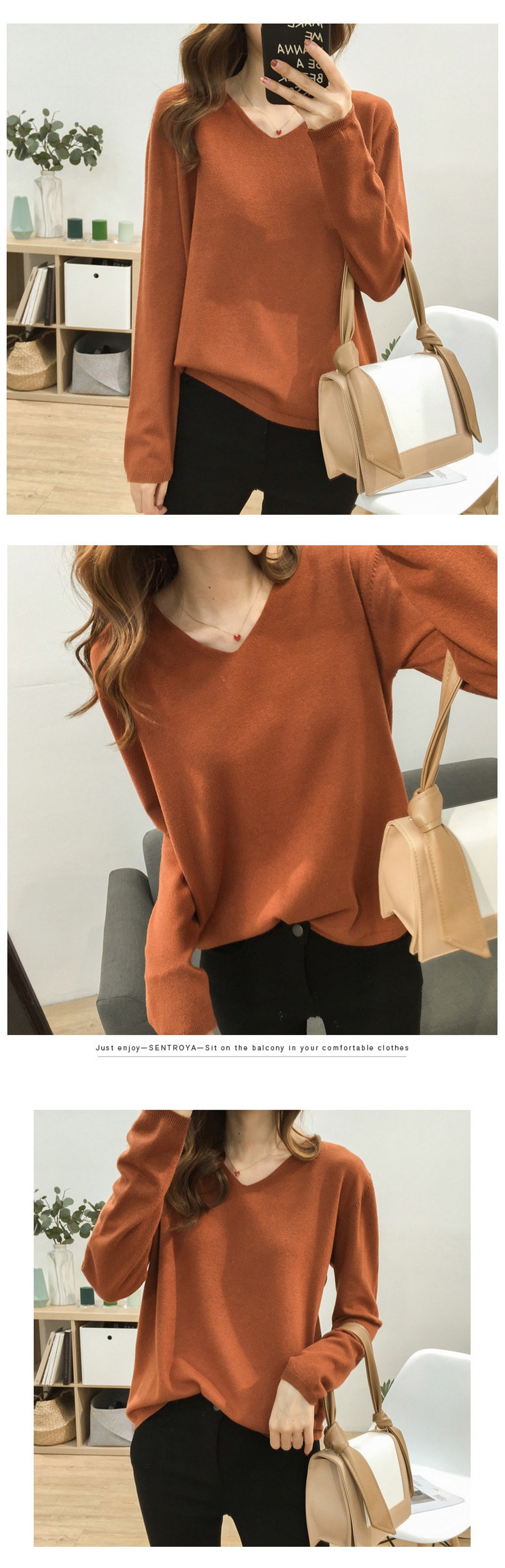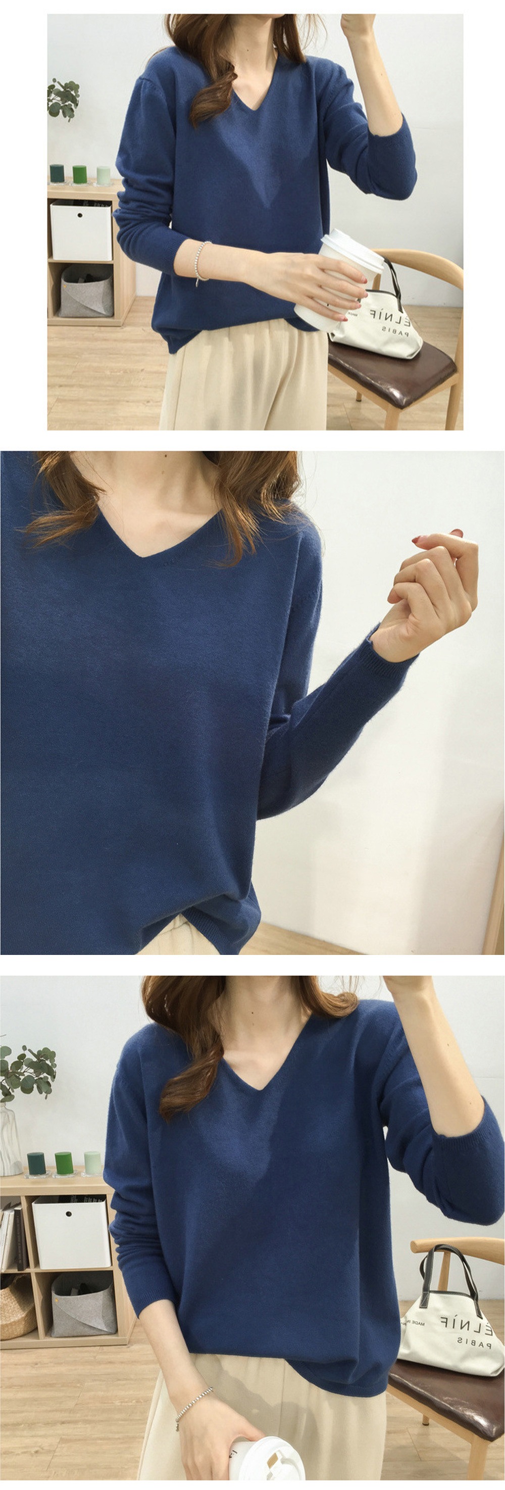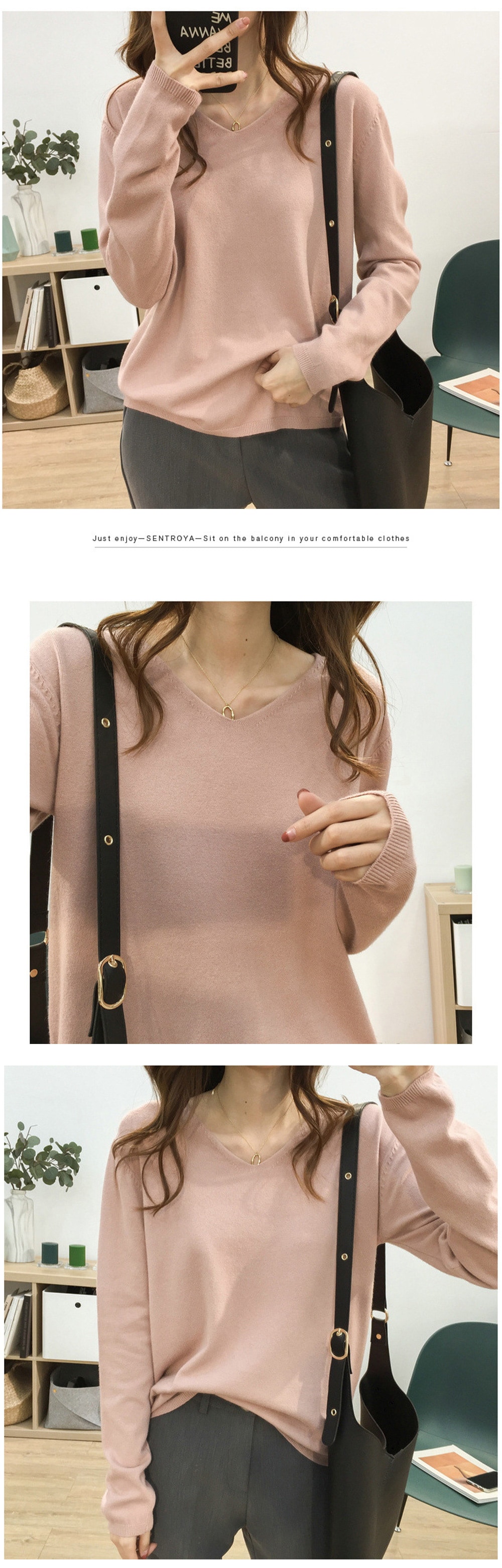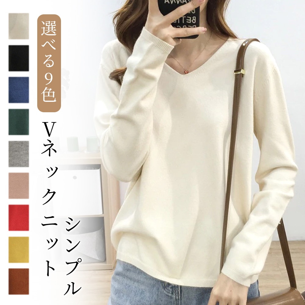 Vネック無地 長袖 ドロップショルダー ニットクルーネック Vネック ニット トップス 長袖 韓国ファッション 秋 冬 薄手 ゆるニット 肌触しっとり きれいめ セータ
