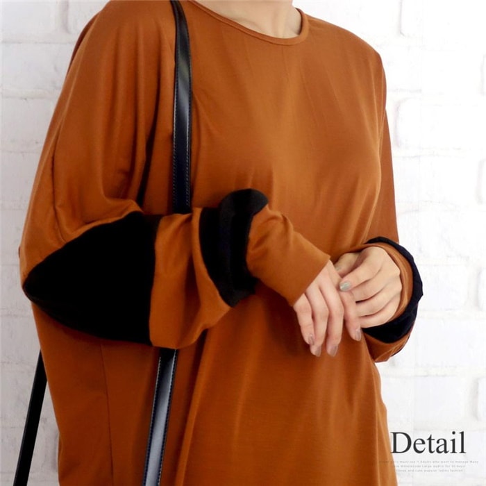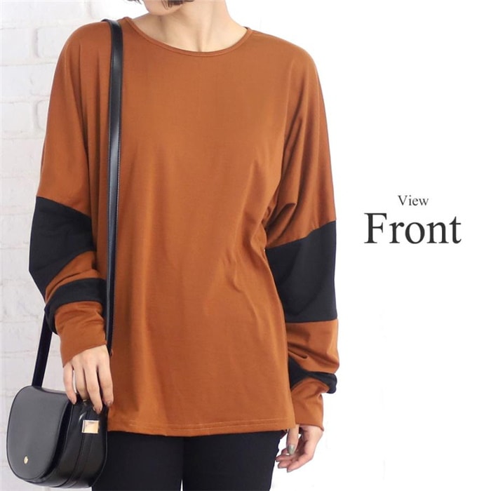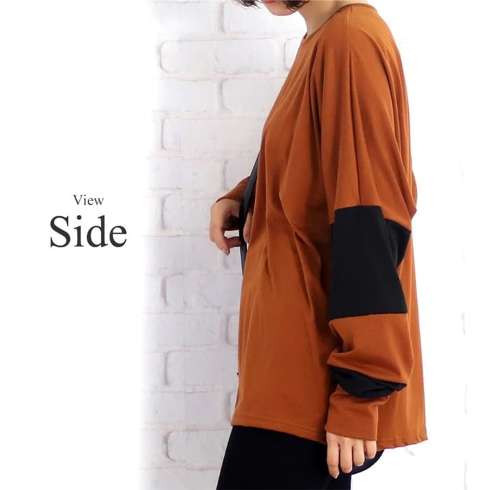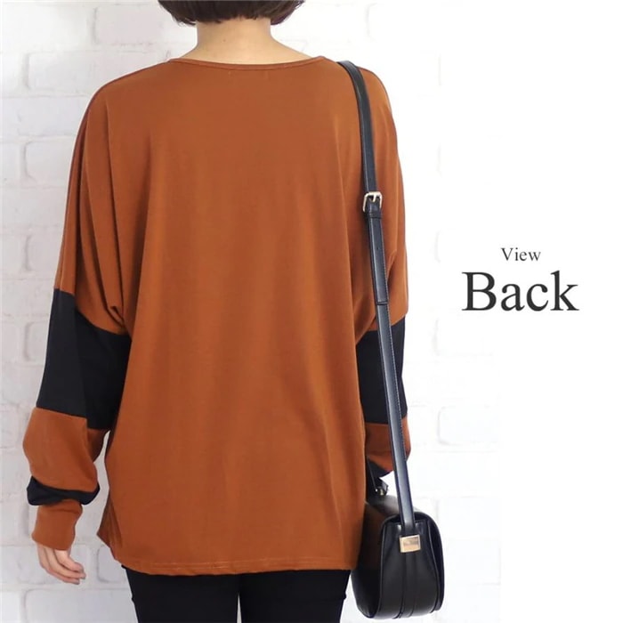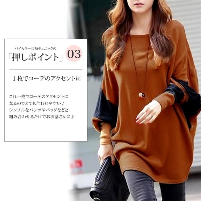 トップス シルエット チュニック 長袖 着痩せ 秋冬 ゆったり 大人系 バイカラー レディース チュニック