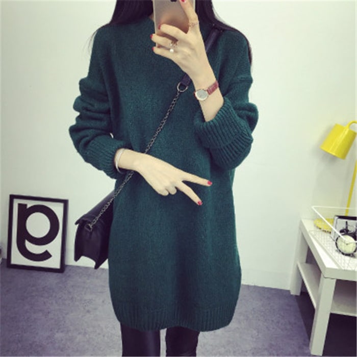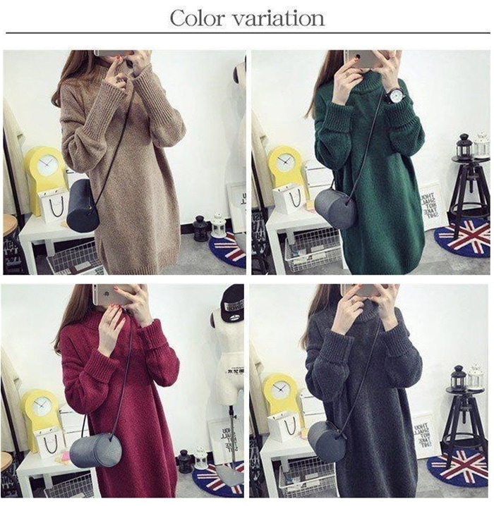 ひざ丈 レディース マキシ丈 タートルネック 秋冬 トップス チュニック ニットワンピース ニット ハイネック チュニック