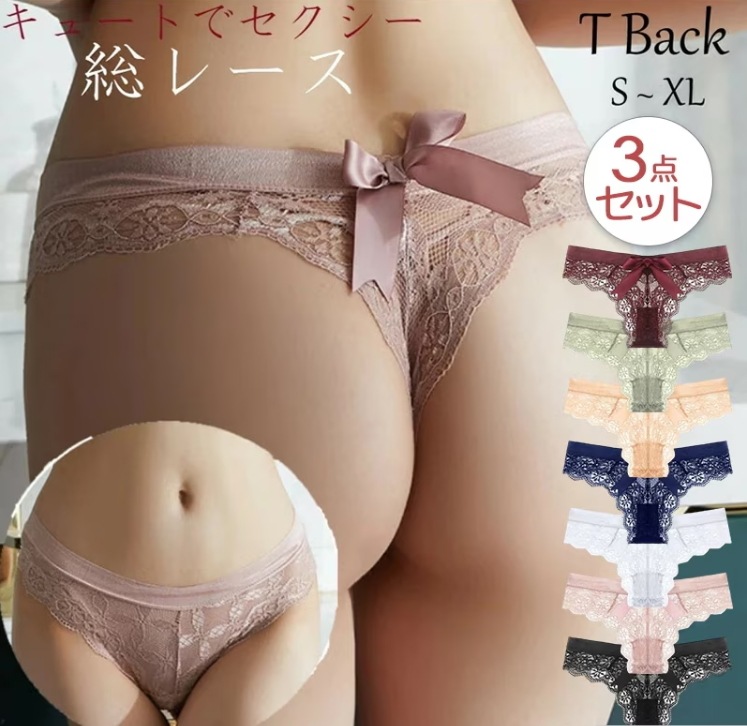 Tバック レディース 3点セットショーツ 大きいサイズ レース シームレス ストレッチ サラサラ タンガ ソング ティーバック ショーツ