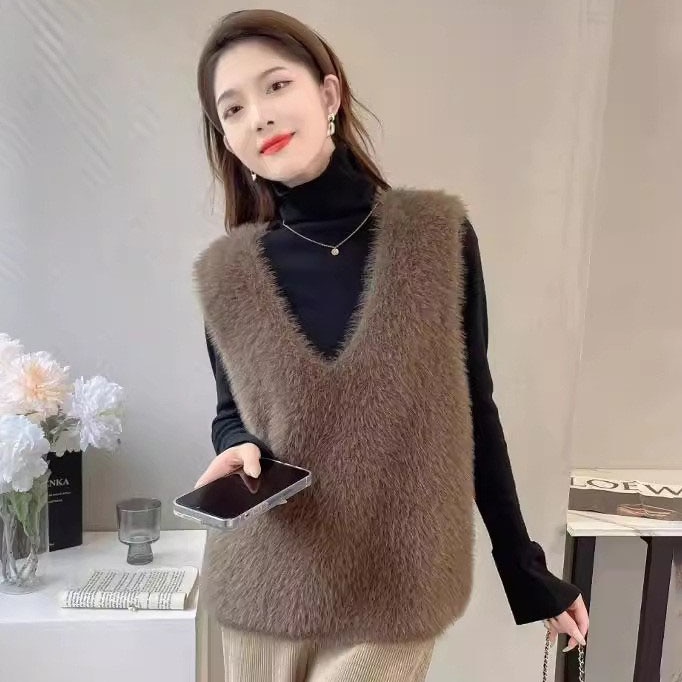 秋冬人気 ニットベスト ふわふわ Vネックロングニット 無地 セーター暖かい プルオーバー レディース タンクトップ 韓国 カシミャタッチ チュニック百掛け カーディガント