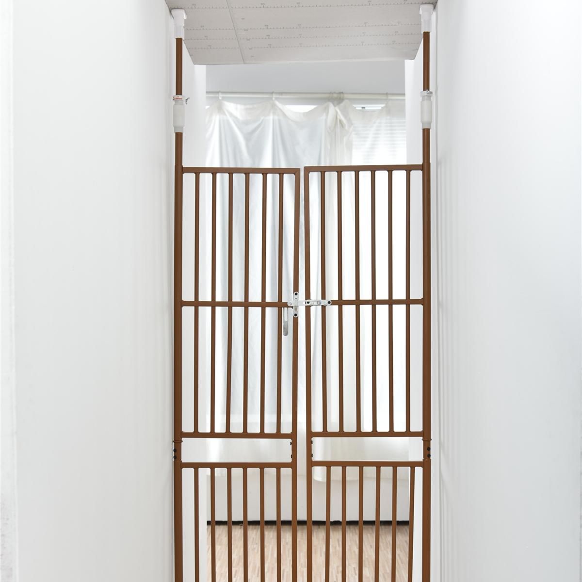 ペット高さ調節対応 205~285cm ドア ケージ 留守番 保護 ネコ 脱走防止 柵 フェンス 脱走防止 猫用 多頭飼い 多頭 スチール ペットケージ 新生活 Brown Steel