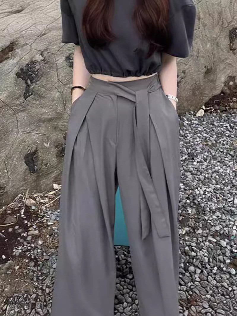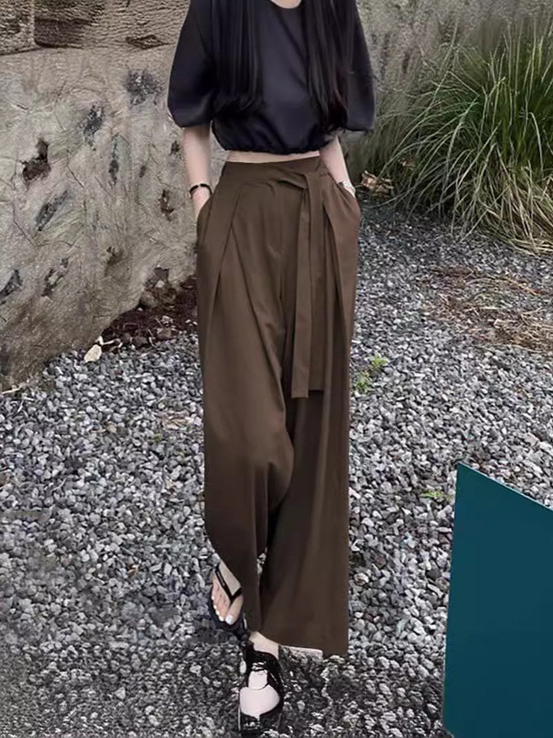 2024新作 シンプル 百掛け ワイドパンツ カジュアルパンツ ハイウエスト 垂れ感 気質 モップパンツ スラックスパンツテーパードパンツひんやりボトムス おしゃれヨガウェア