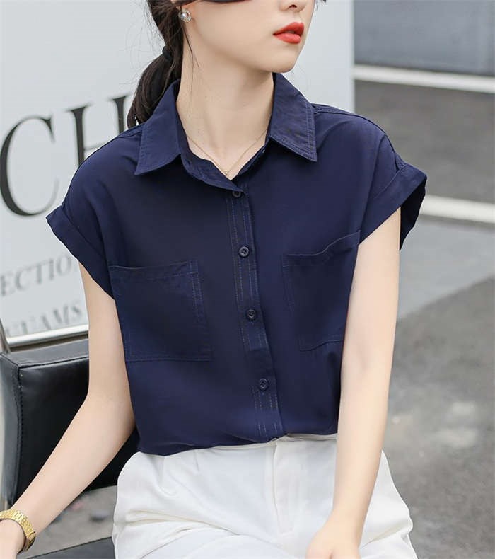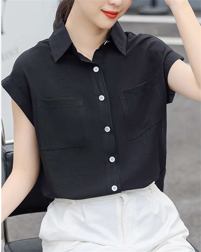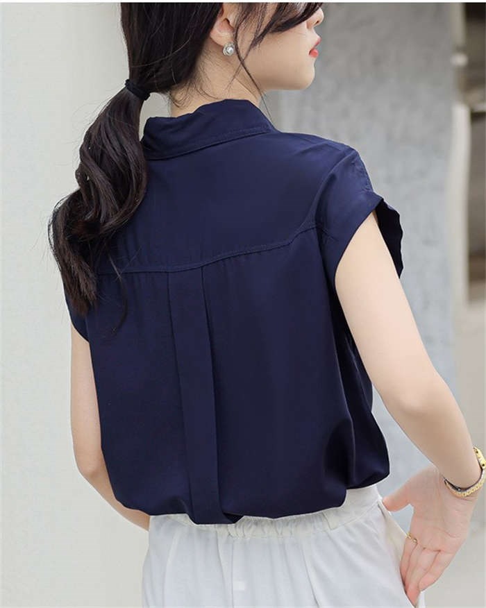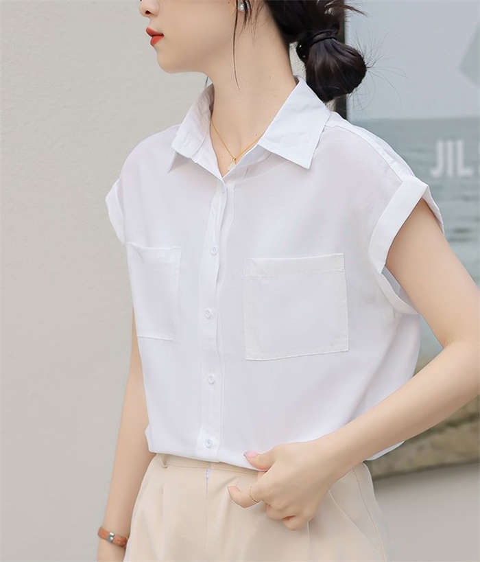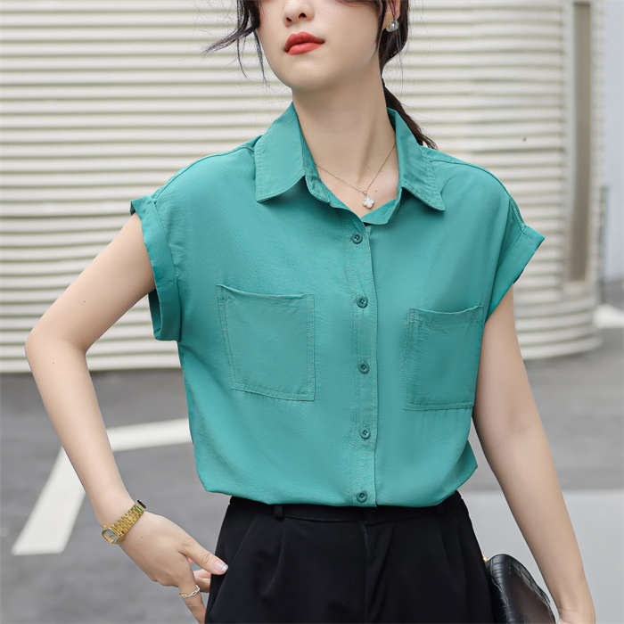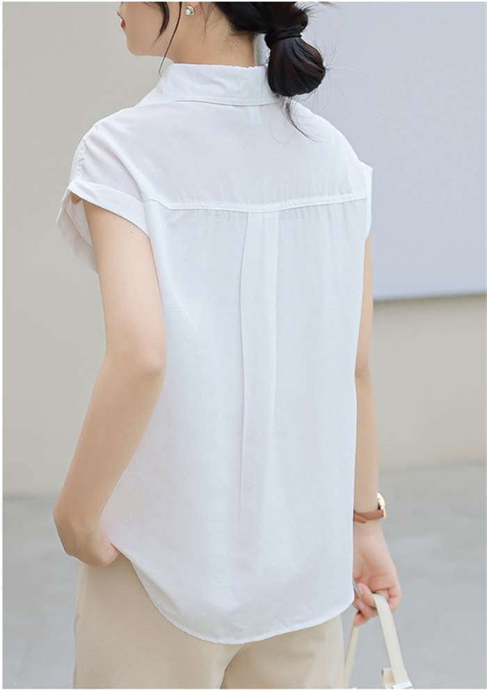 シャツ ブラウス レディース ノースリーブ フレンチスリーブ 袖ロールアップ トップス バックロング きれいめ 大人 カジュアル 仕事 オフィス 襟付き 春 夏 無地 ビジネス 通勤 OL 前開き お