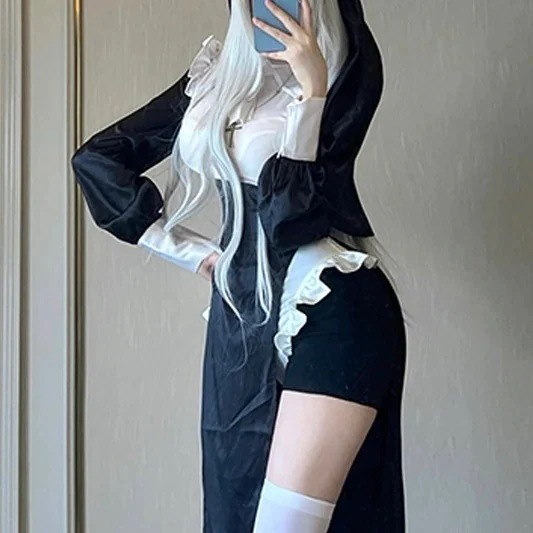 ロリータ 二次元 ハロウイン 韓国ファッション 大人気ロリスーツコスプレ シスター服cos服制服セクシーシスターハイウエスト開叉シスター服
