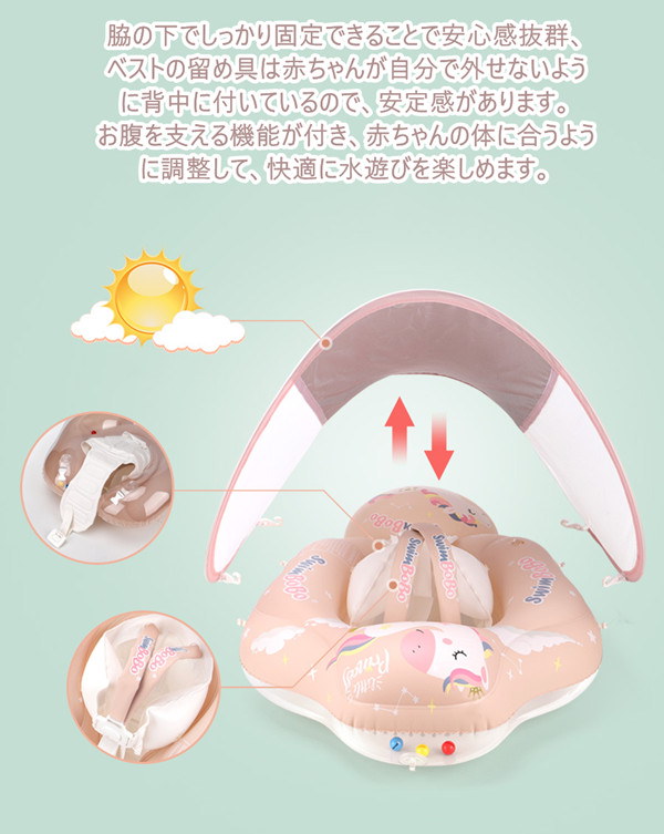浮き輪 幼児用 ベビーフロート 屋根付き ベビー用浮き輪 赤ちゃんうきわ 女の子 海フロート お風呂 外遊び 海 プール パーティ 海水浴 夏グッズ アウトドア 誕生日 浮き輪 子供 ベビー 子供用