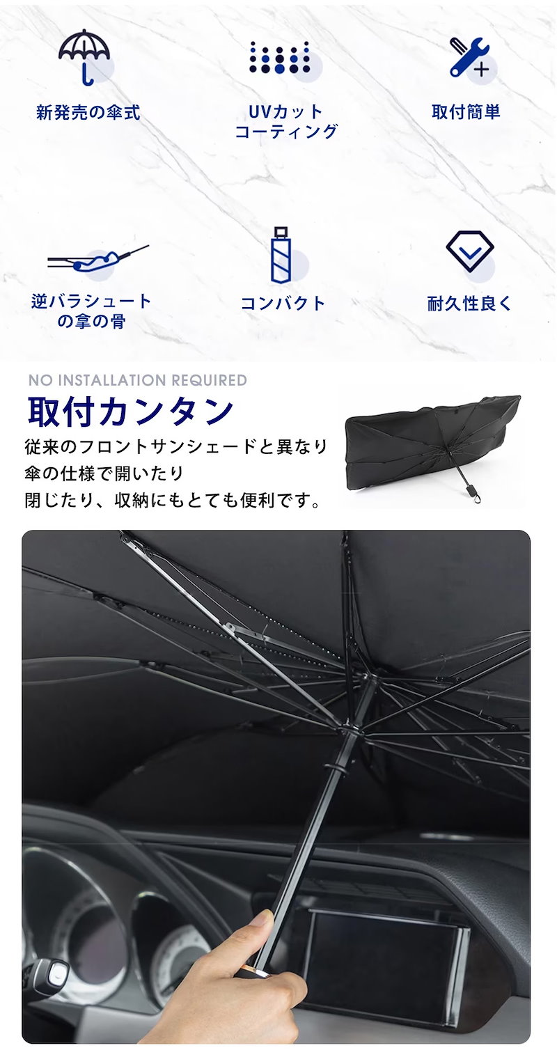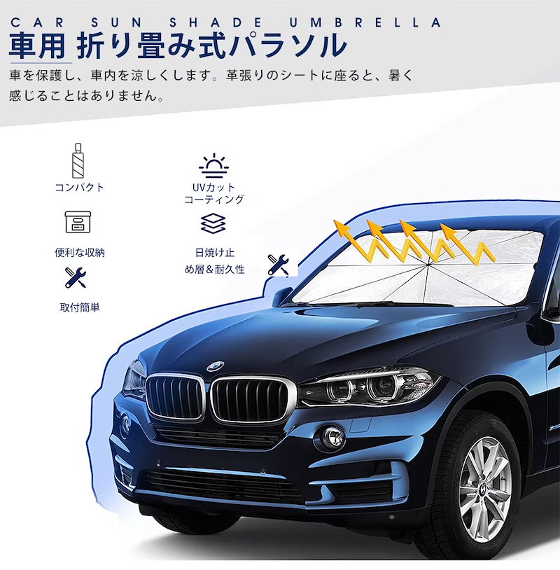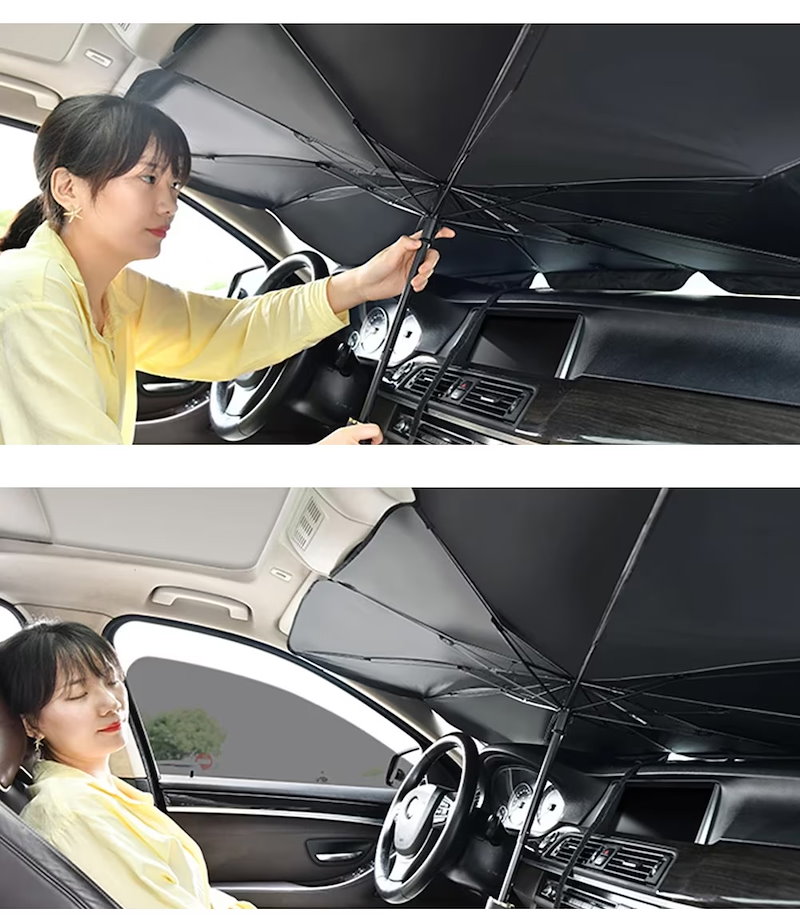 最新型 車用 サンシェード 車 傘式 車用パラソル 車 フロントサンシェード 日よけ 折りたたみ 熱中症対策