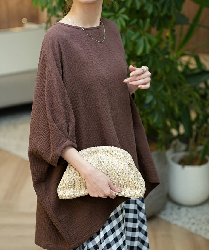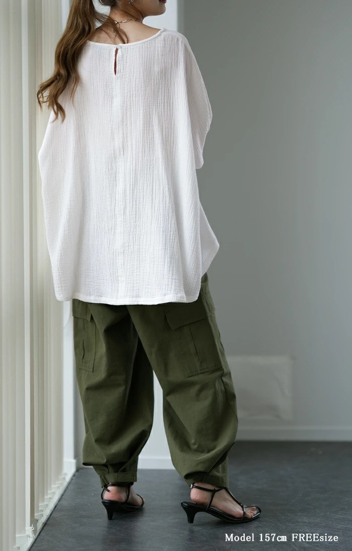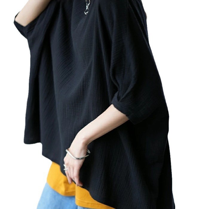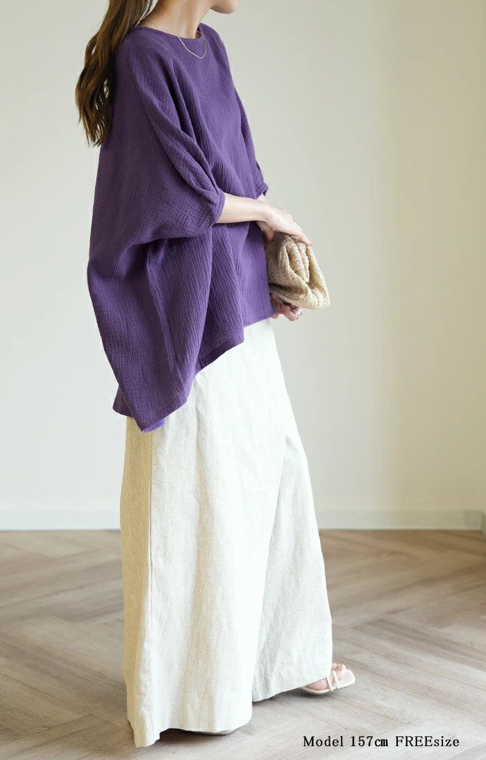 棉麻ブラウス レディース トップス 7分袖 ドルマン レース ドルマントップス 綿 コットン オーバーサイズ 透かし彫り 体型カバー ゆったり