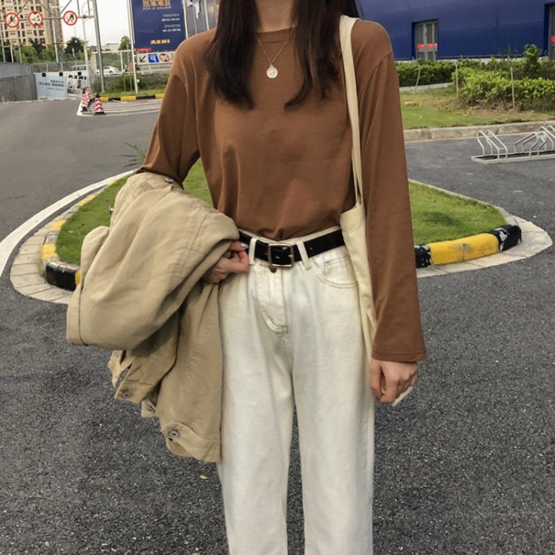 2枚3OO円OFF秋定番 百掛け 長袖Tシャツ シンプル無地スウェット 初秋薄 アンダーウェア韓国ファッション ゆったり怠惰な風 長袖 トップス 流行り インナー 大きいサイズ tシャツ レディース