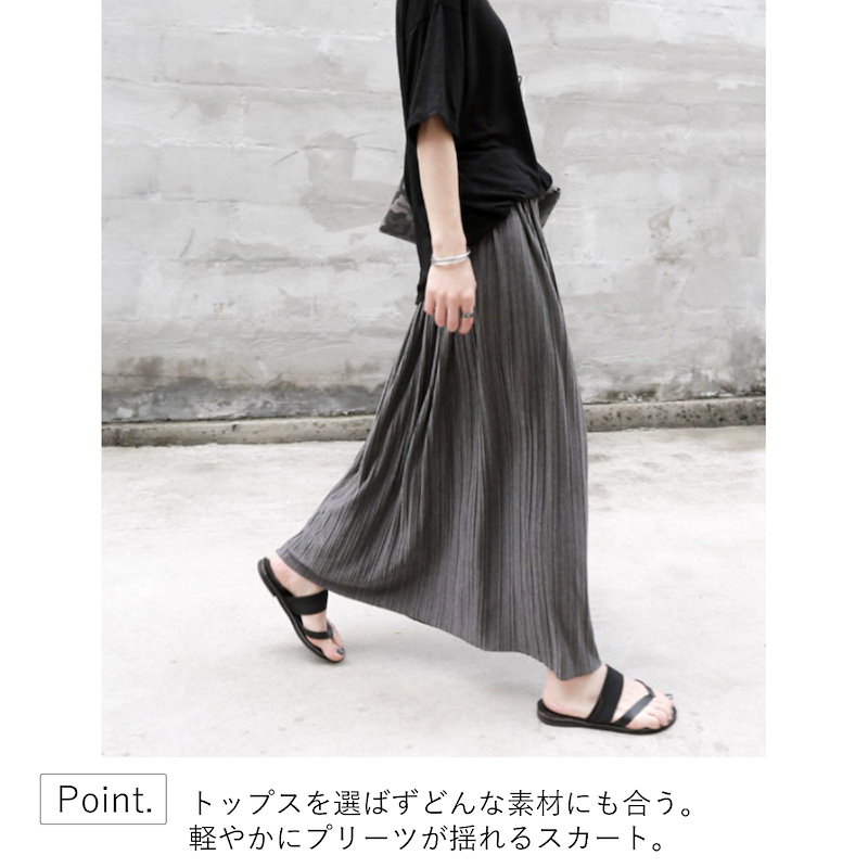 プリーツスカート ロング スカート 夏 春 秋 冬 コーデ iライン ウエストゴム 大人 オフィス かわいい きれいめ 細見え タイト 長め 10代 20代 30代 40代 50代 おしゃれ