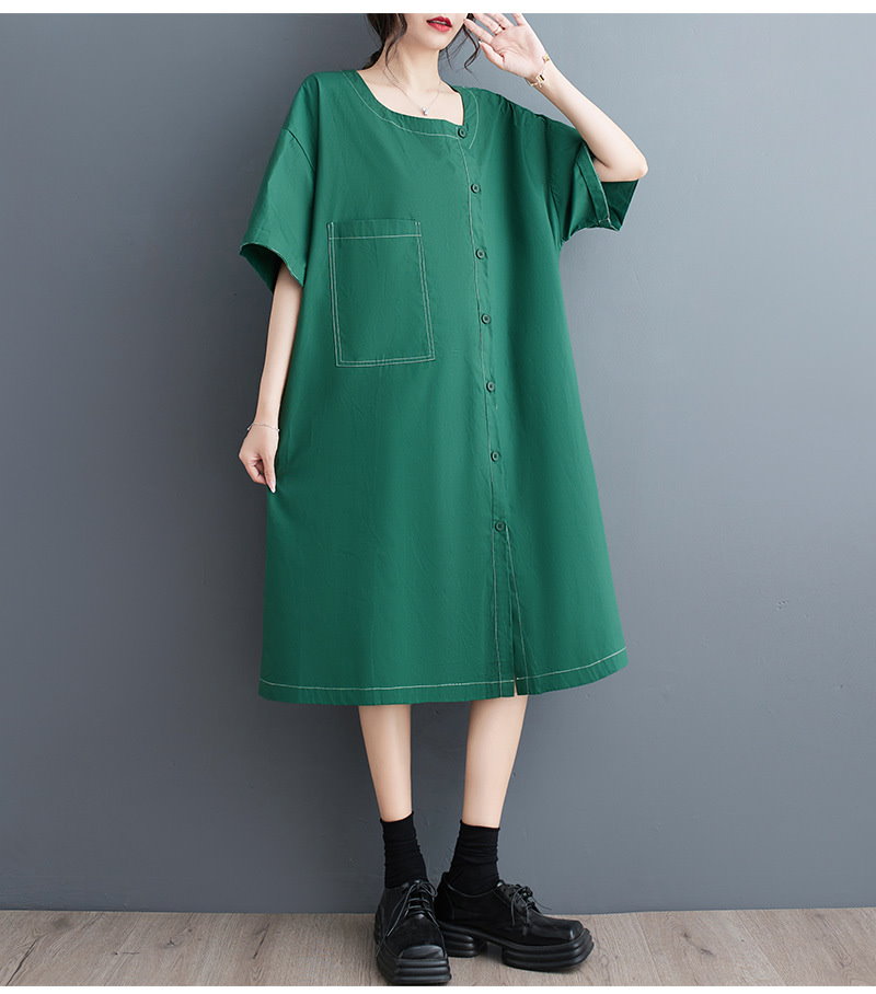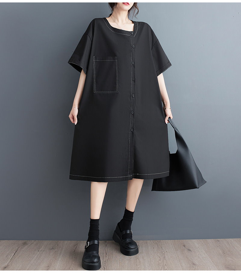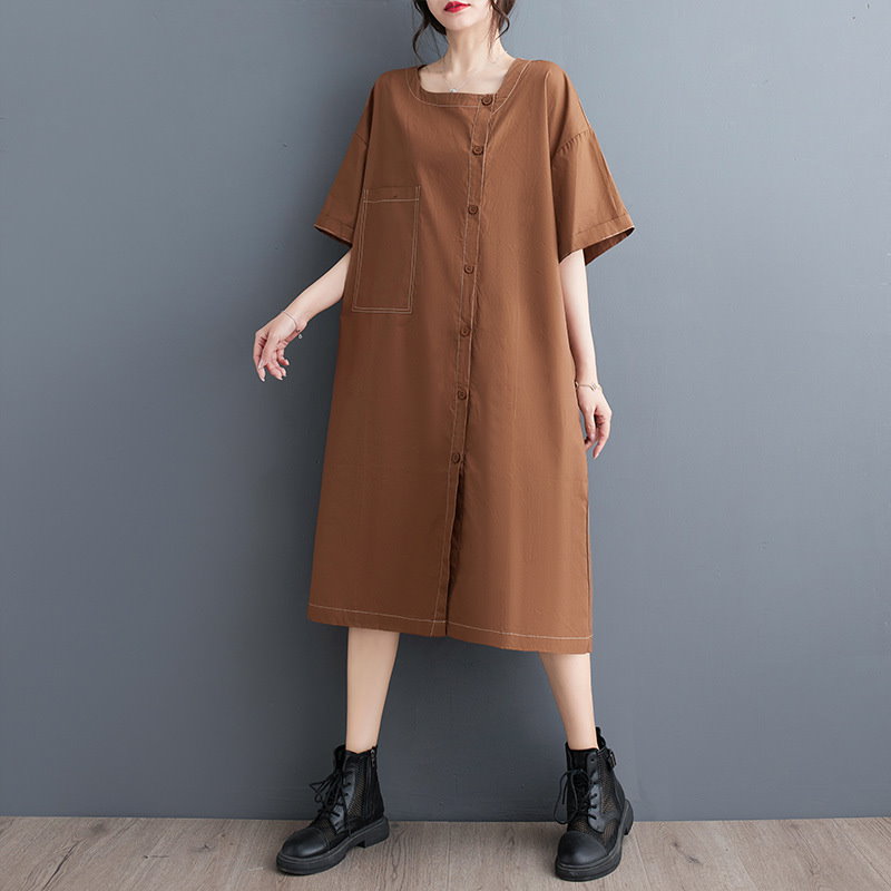 夏の新作 韓国版 ファッション カジュアル 通勤 復古 民族風 ゆとりがある ラージコード 文芸 気質 やせて見える 簡単な エレガント ミディアム シャツ ワンピース JGX523