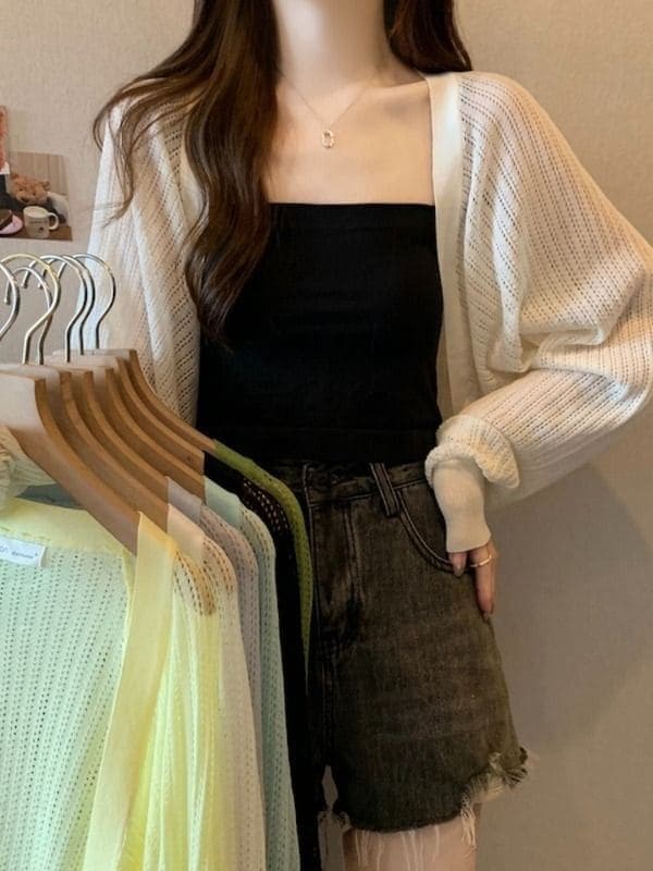 カーディガン ニットの日よけカーディガン夏 紫外線対策 ゆったりオフショルダー