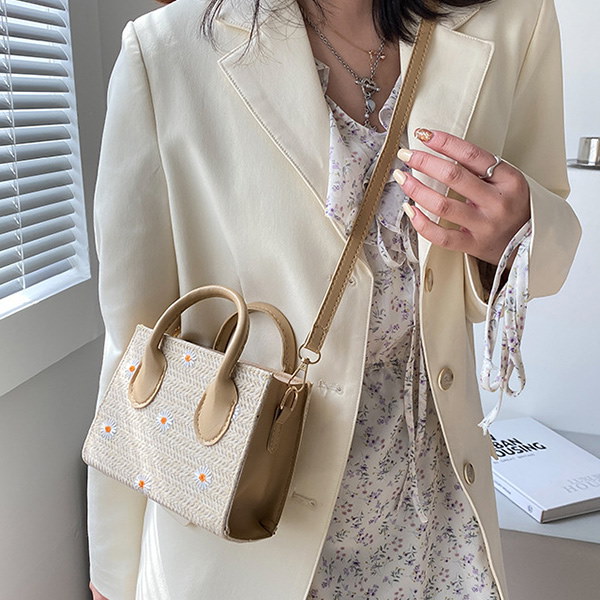 カーキ 小さい バッグ 刺繍 花柄 2WAY 斜めがけ 鞄 ホワイト ハンドバッグ かごバッグ 肩掛け レディース ショルダーバッグ ストロー