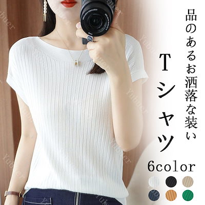6カラー 薄手 リブ カットソー 接触冷感 涼しい 春夏 夏 上品 オフィス トップス 半袖 レディース