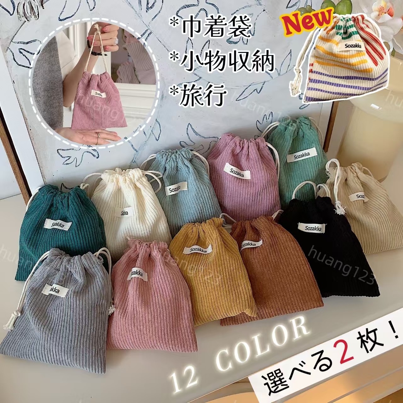 新色12色 選べる3枚 巾着 ポーチ 小物入れ メイクポーチ 巾着袋 小物収納 旅行 バッグインバッグ かわいい おしゃれ 韓国 プチプラ 収納ポーチ