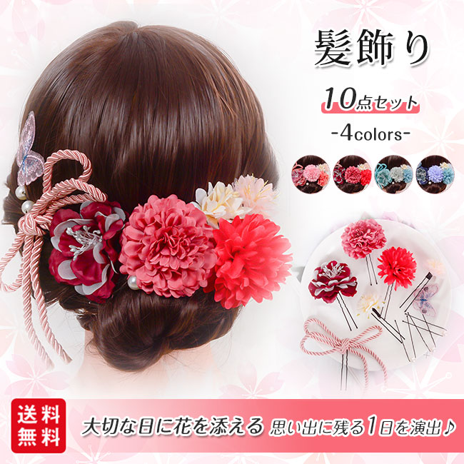 髪飾り 成人式 和装 花 10点セット 髪留め Uピン 花 卒業式 七五三 お祭り 着物 浴衣 和装 結婚式 花嫁 子供 大人 プレゼント ギフト ラッピング