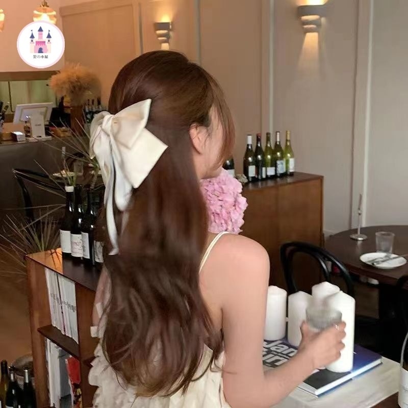 夏insリボンヘアアクセ白リボンヘアピン女性後頭部スプリングクリップヘアアクセ ヘアクリップ
