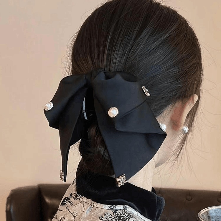復古のサテンのリボンは女性をつかませます高級感の気質の優雅な低いポニーテールは後頭部をはさみますピン頭飾りヘアピン ヘアクリップ