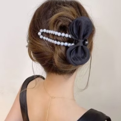 ヘアクリップ 高級感漂うリボングリップポイントのポニーテールクリップピン優しい雰囲気のハーフヘアピンサメクリップ 百掛け 韓国ファッション メガ割