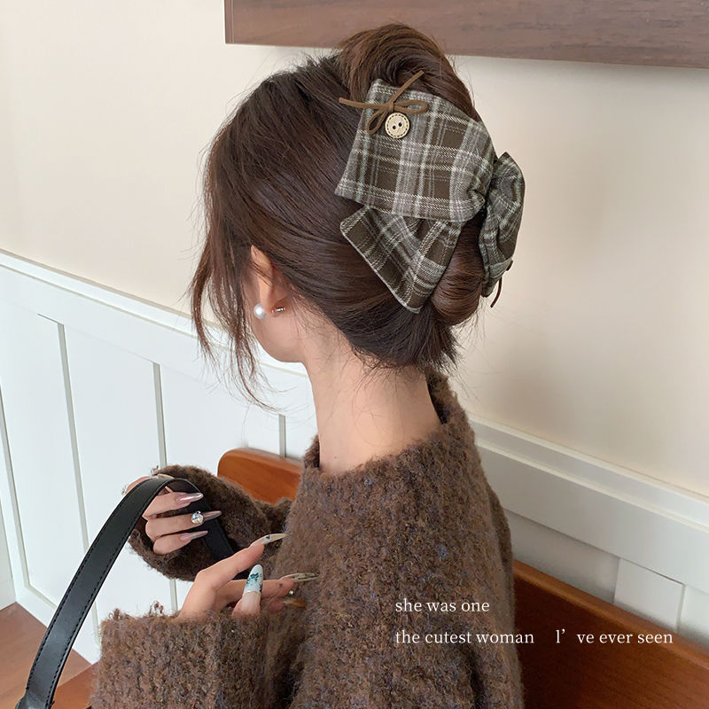 ヘアクリップ 韓国系デザインリボングリップ女性高級感2025新型レトロヘアピン後頭部皿髪サメ髪飾り 百掛け 韓国ファッション メガ割 ヘアクリップ