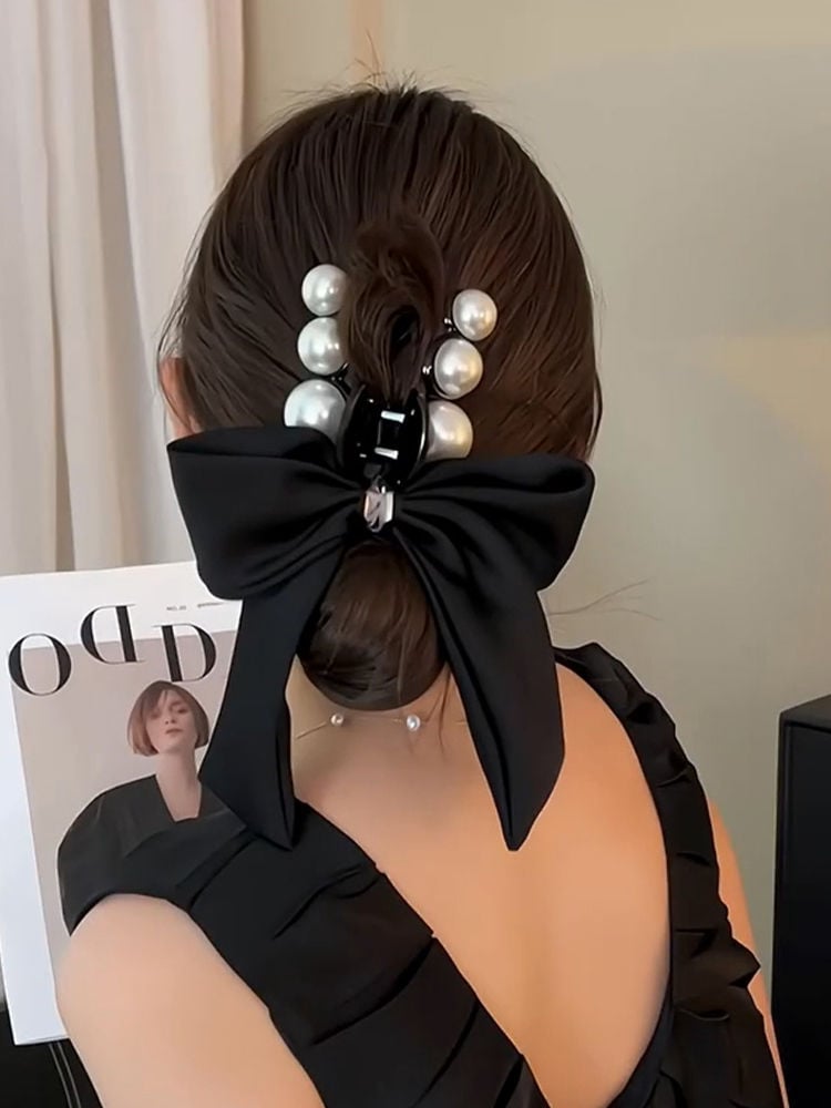 ヘアクリップ 真珠リボングリップ気質軽贅沢高級感大皿髪サメグリップ髪飾りセレブグリップグリップ 百掛け 韓国ファッション メガ割 ヘアクリップ