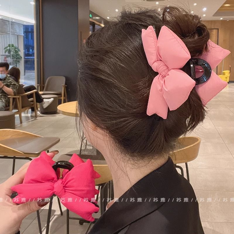 ヘアクリップ ピンクリボンスポンジつかみ髪飾り姫髪挟み女後頭部大皿髪サメ挟み髪飾り 百掛け 韓国ファッション メガ割 ヘアクリップ