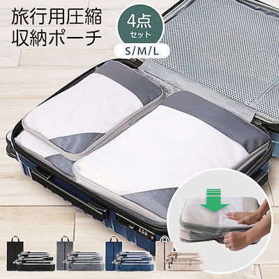トラベルポーチ 4点セット 圧縮 おしゃれ 圧縮袋 衣類 旅行 収納ポーチ バッグインバッグ 圧縮トラベルポーチ コンパクト 収納 撥水 仕切り ファスナー 国内旅行 海外旅行