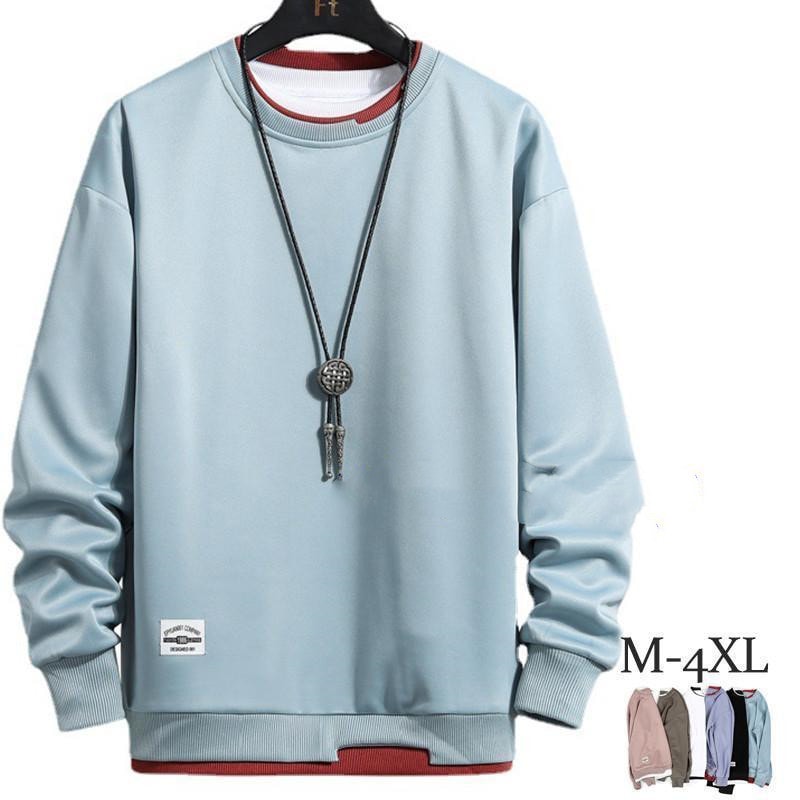 スウェットトレーナー メンズレディース 春秋 長袖Tシャツ 無地 ゆったり カップルプルオーバートレーナー フェイクレイヤード オシャレカジュアルトップス