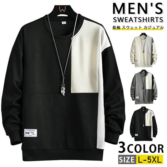 トレーナー メンズ 切り替え スウェット オシャレ プルオーバー 長袖 クルーネック ルームウェア トップス 春服 新作 秋服 春夏秋冬 Tシャツ