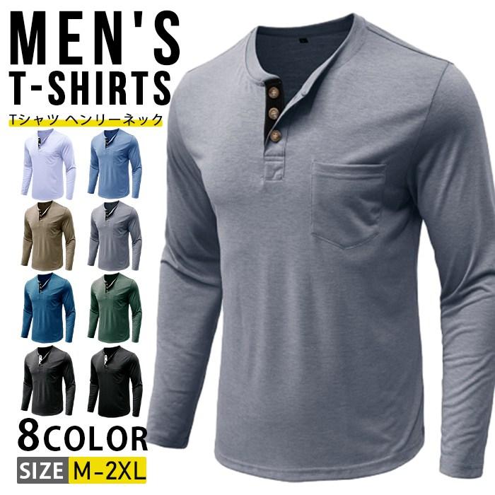 Tシャツ ヘンリーネック 長袖 メンズ ロンT トップス 無地 大人 春 秋 アメカジ カットソー ティーシャツ Tシャツ