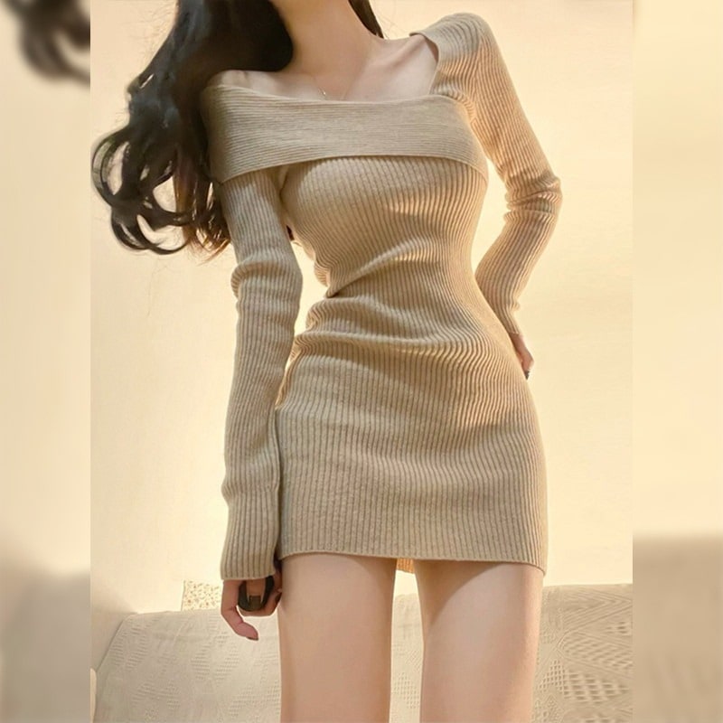 甘いギャル純欲風がとてもきれいで長袖ニットワンピースの修身顕結核は底付きのヒップスカート秋冬モデル ニットワンピ