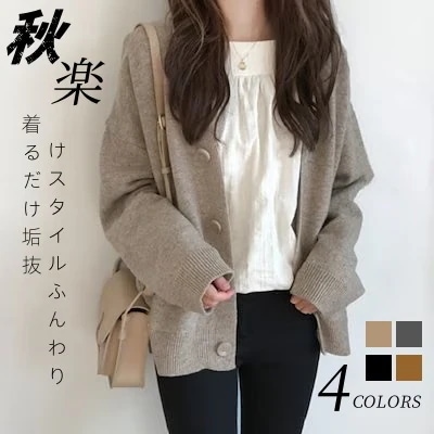 人気なリブニット 韓国ファッション 秋冬 ニットカーディガン 無地日系 カーディガン 怠惰な風 百掛け セーター レディース 通勤 長袖 アウター ゆったり