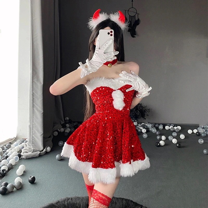 コスム サンタコスプレ コスプレ コスム コスプレ 四点セット サンタコスプレ コスプレ ワンピース カシャ クローブ スパンコール おしゃれ