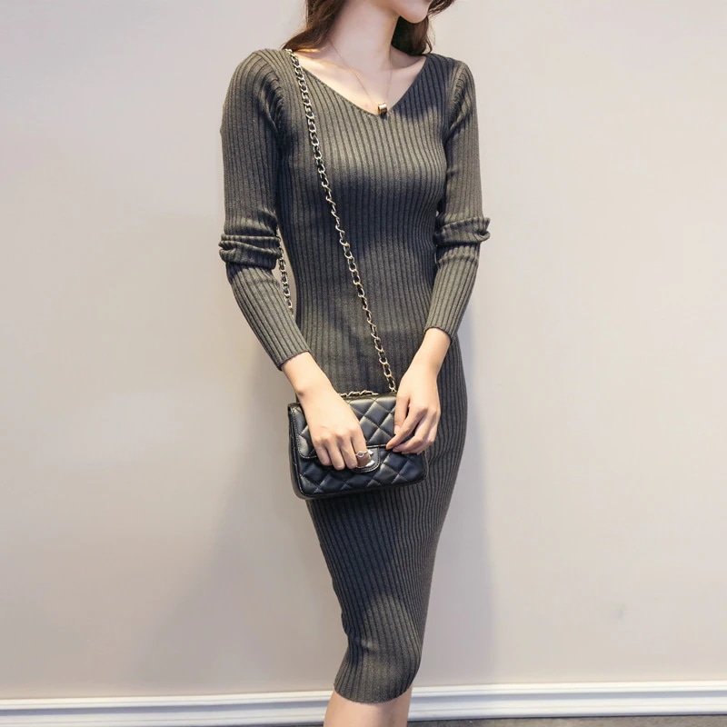 ニットワンピース レディース 40代 秋冬 長袖ワンピース 無地vネック タイトスカート 膝丈丈 ニットインナー 大人 セクシー オシャレ韓国風 ゆったり 30代 50代