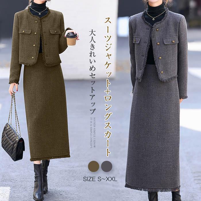 ツイードスーツ セットアップ スーツジャケット ロングスカート スリット入り 大人 きれいめ 入園式 エレガント おしゃれ 大きいサイズ 入学式 卒業式