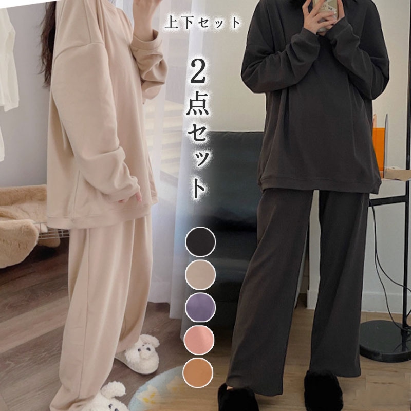 2点セット ストレッチ&柔らかいルームウェアセットアップ部屋着レディースパジャマ秋冬上下セット韓国ファッション セットアップ