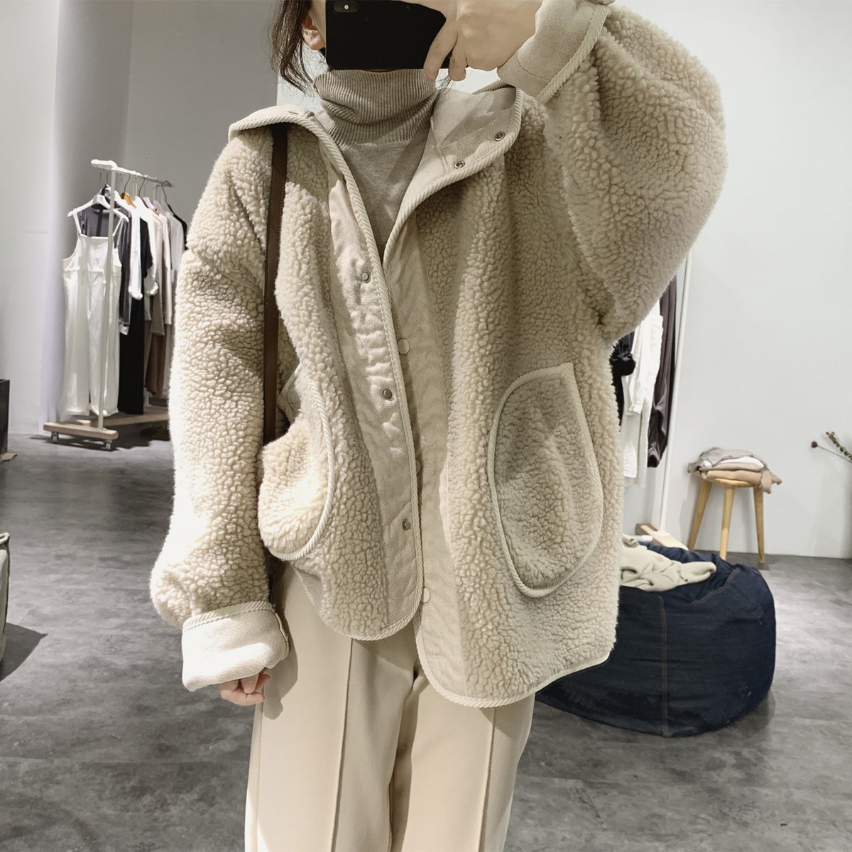 デニムショートパンツ評価ウールトップコットン服秋冬新作厚手シニア感覚ラムウールコート女性 トレンチコート