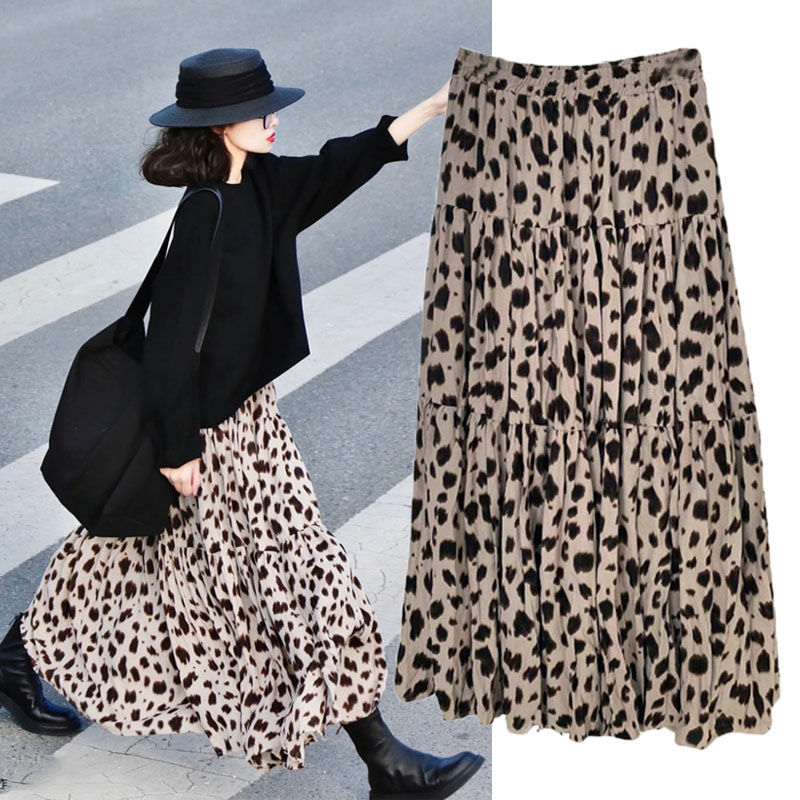 レデイース服スカートロングスカート2023秋新作ゆったりロングマキシ丈ヒョウ柄大きいサイズS-4XL ロングスカート