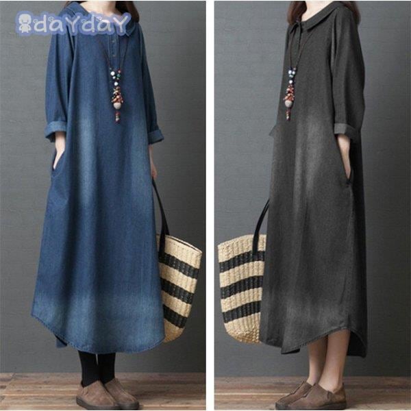 マキシ デニム レディース デニム ロング 長袖 ゆったり 体型カバー ロング 森ガール 春 30代 40代 着痩せ ロングスカート