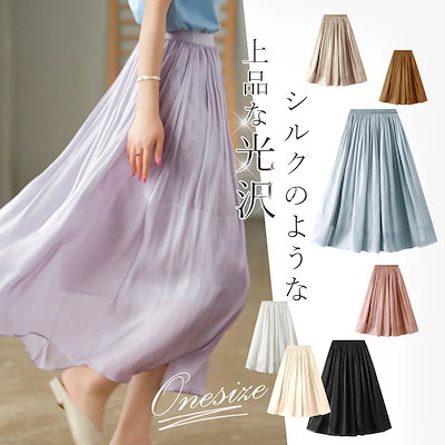 光沢感あるプリーツスカート ロングスカート ひざ丈 体型カバー 着痩せ 通勤 ギャザースカート マキシスカート 裏地付き ウエストゴム スカート レディース ふんわり 夏服 お洒落