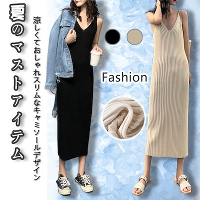 夏のキャミソールワンピース ウエストシェイプ ロング スリムフィット 学生用ワンピース 涼しい ルームウェア