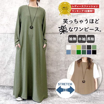 ワンピース ワンピ ノースリーブ 半袖長袖レディース エンボス ロング丈 マキシ丈 楽ちん 春 夏 秋 [郵3]^w700^
