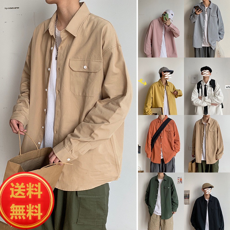 シャツ メンズ トップス 長袖 カジュアルシャツ ワイシャツ 無地 ビッグシルエット 韓国ファッション オーバーサイズ 大きいサイズ 軽い 柔らかい ゆったり 春秋