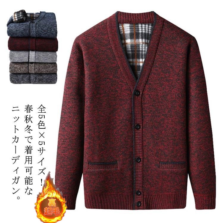 敬老の日 プレゼント 裏起毛 カーディガン メンズ ビジネス 前開き 洗える ニットセーター 秋冬 ニット セーター 厚手 Vネック 大きい