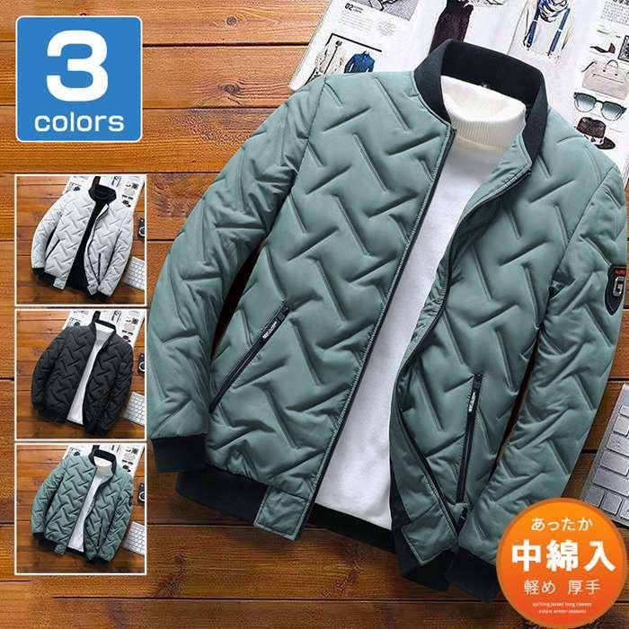 ジャケット メンズ 中綿 ブルゾン ジャンパー コート 厚手 防寒 防風 ライトアウター アウター 秋 冬 通学 通勤 無地 シンプル カジュアル